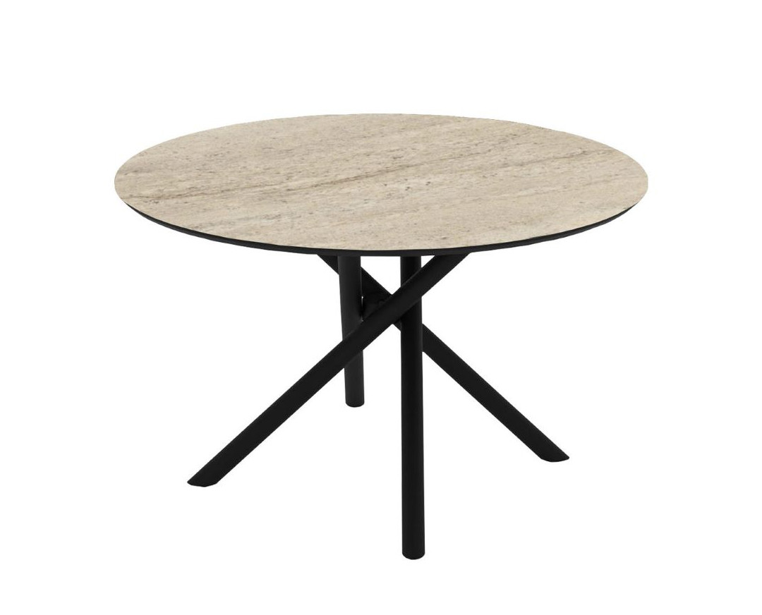 ROUND DINING TABLE DIAM 120CM IN TRAVERTEN MDF TOP AND BLACK METAL BASE /DIAM. 120 X H76CM