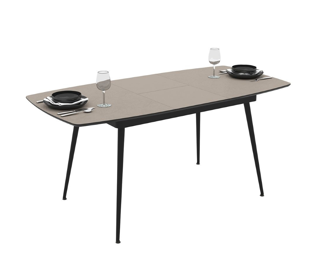 EXT. DINING TABLE 125 + 40 X 80 X H75CM IN ANEMON MDF TOP AND BLACK METAL FEET