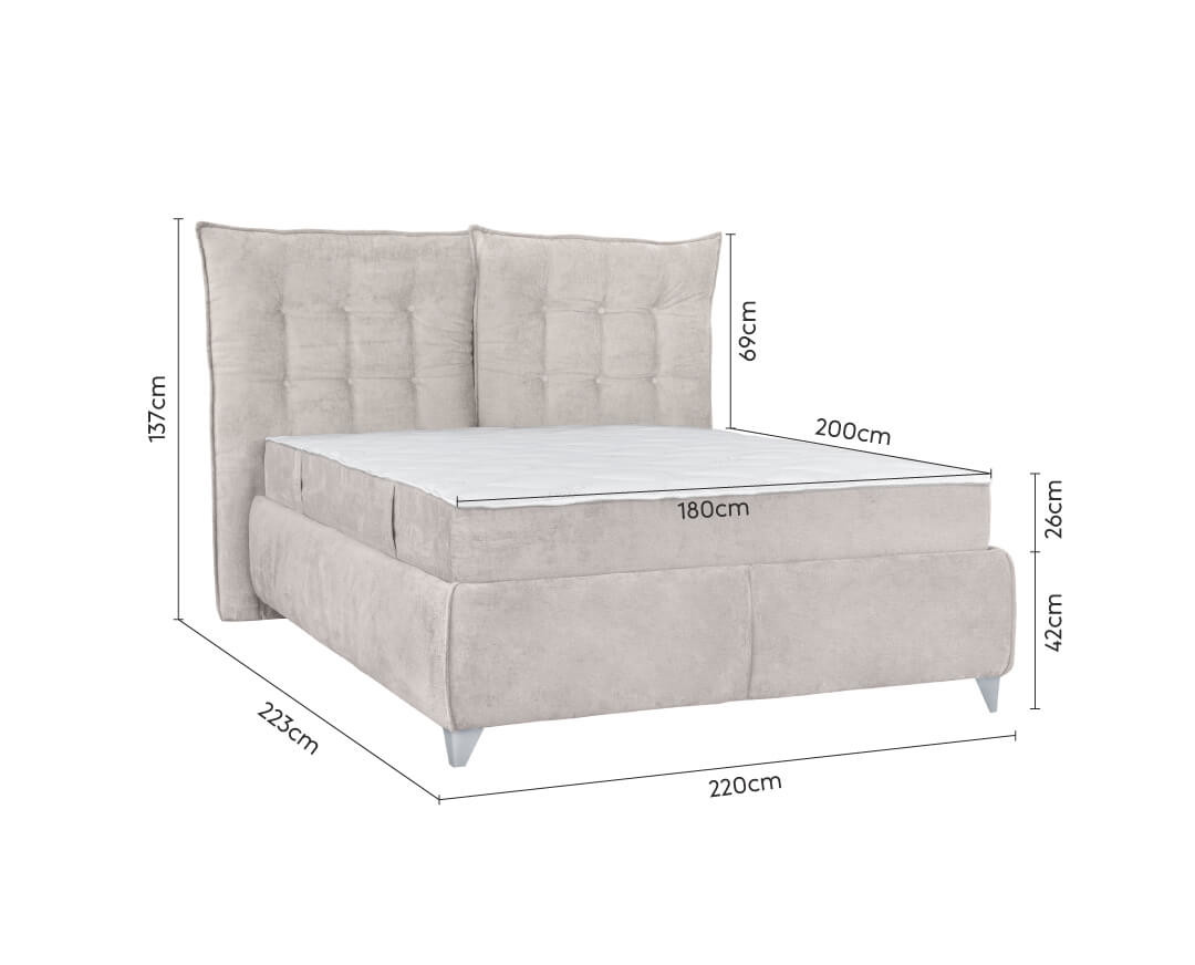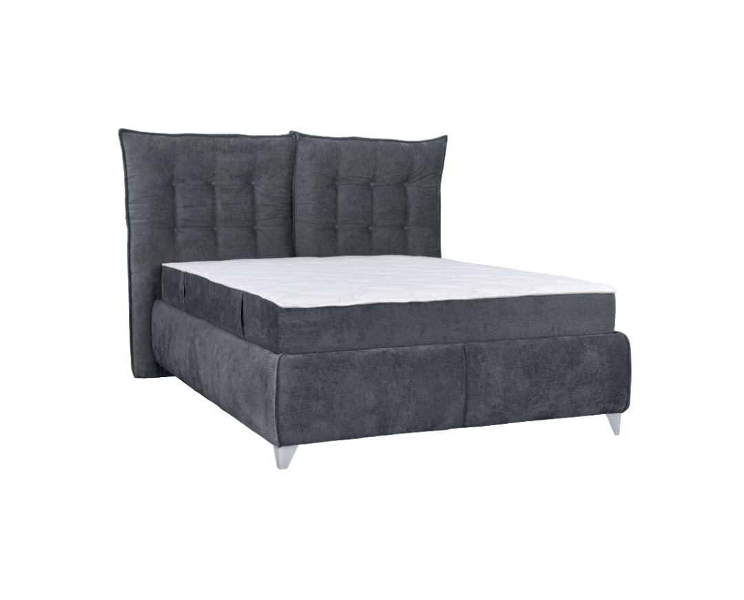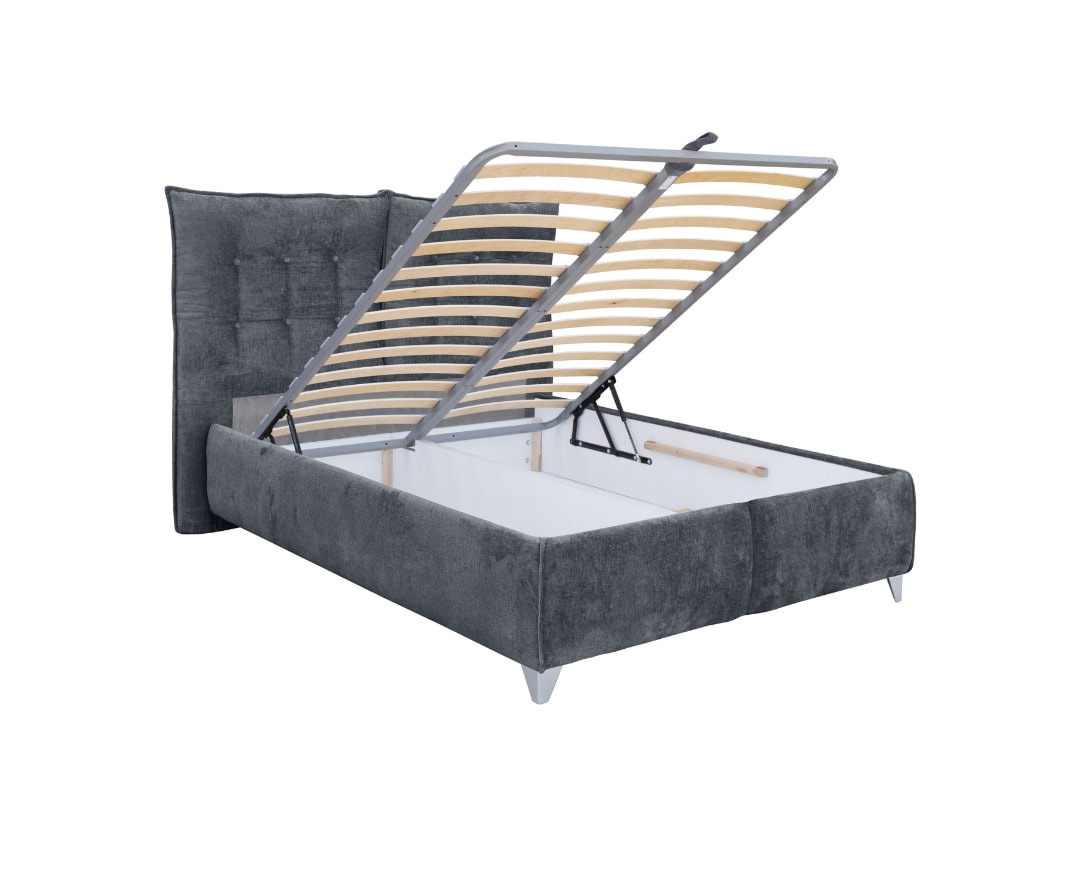 ASTERIX 180 grey (II) DOUBLE BED WITH FOLDING HEADRESTS AND STORING SPACE & TELARO (180X200)CM-UPHOLSTERED IN FAB. PERFECT HARMONY 99 (GREY)-PACKED IN 3 BOXES–Mattress sold separately–