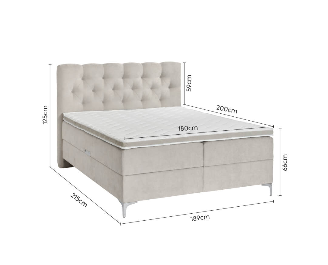 NEW TITTO 180CM BED WITH STORING SPACE AND POCKET SPRING MATTRESS +TOPPER 6CM (180 X 200CM)-UPHOLSTERED IN FAB.WIND 05 (BEIGE)-| METAL LEGS