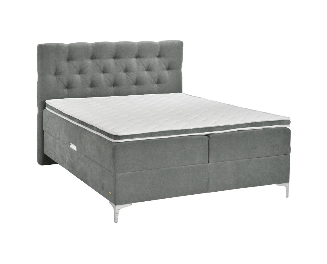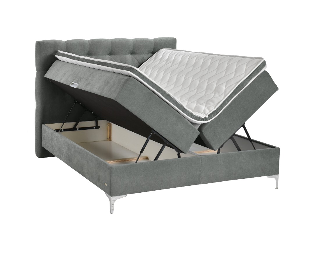 NEW TITTO 160CM BED WITH STORING SPACE AND POCKET SPRING MATTRESS +TOPPER 6CM (160 X 200CM)-UPHOLSTERED IN FAB.WIND 89 (GREY)-| METAL LEGS