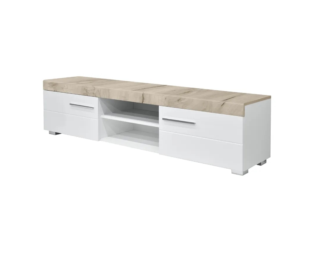TV STAND WITH A DOOR ON THE LEFT+2OPEN SHELVES IN THE MIDLE + A DOOR TO THE RIGHT DIM. W180 X D40 X H45.4CM COL. GREY OAK+WHITE-KD-PACKED IN 3 BOXES