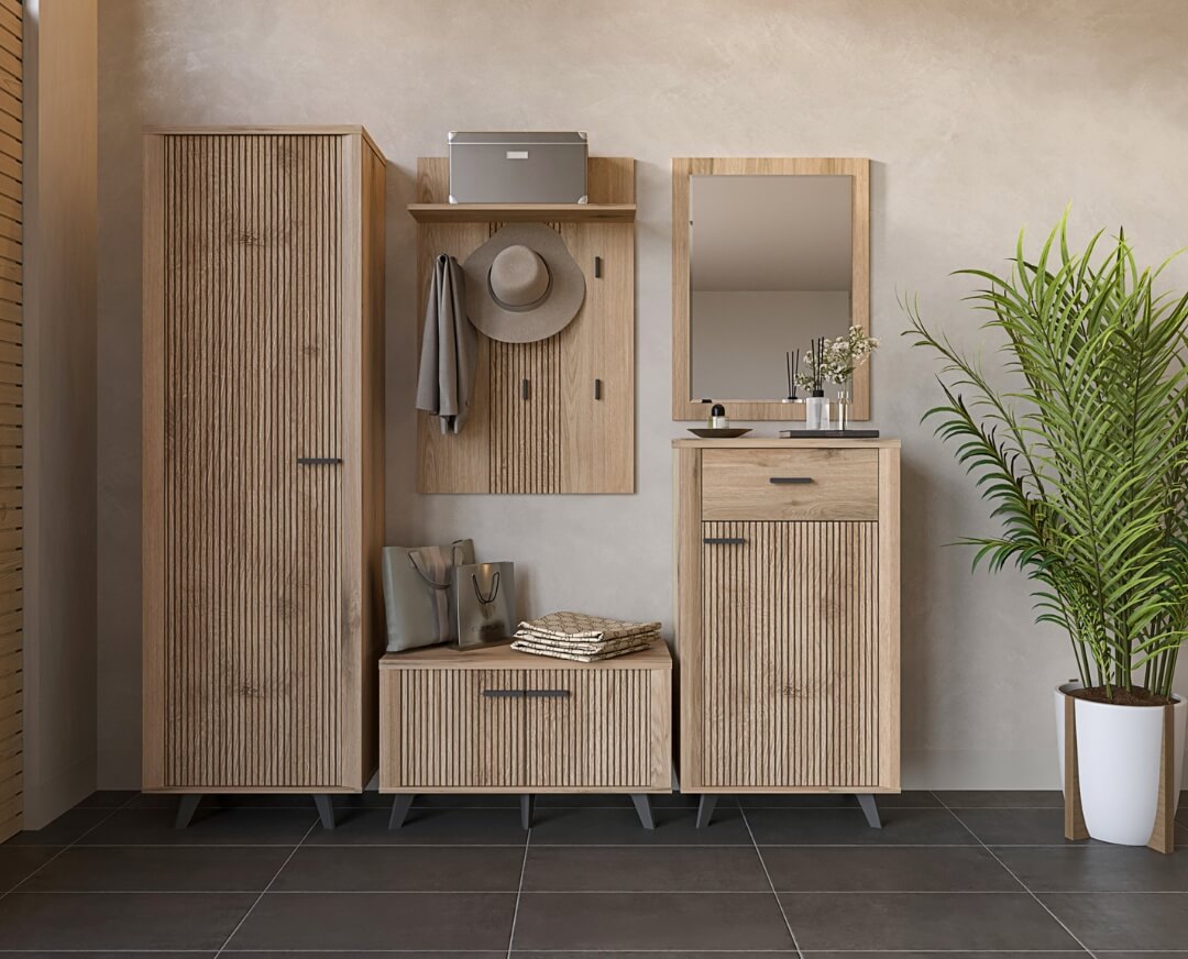 ONE DOOR TALL CABINET WITH 4 SHELVES INSIDE W60,5 X D35 X H196CM/ COL. NATURAL