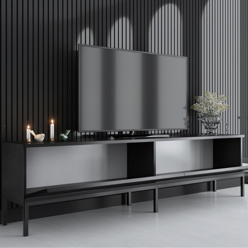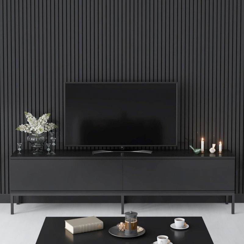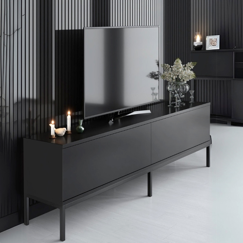 tv stand with 2 dropdown doors-col.black and black metal feet -dim.w180x d30 x h47cm-kd-