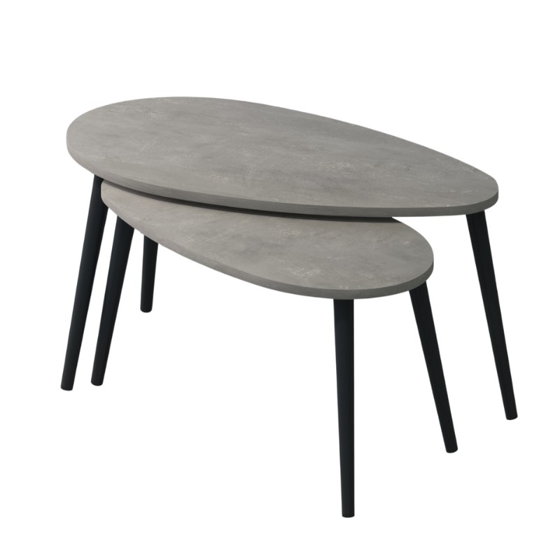 set of 2 coffee tables /grey retro col tops -black massif beech wood feet /dim 80×40 xh46cm/ w67 x34 x h43cm