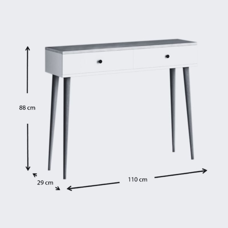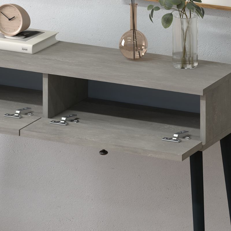 console with 2 drop down doors in col.retro grey and black beech wood feet /dim. w110 x d29x h88cm