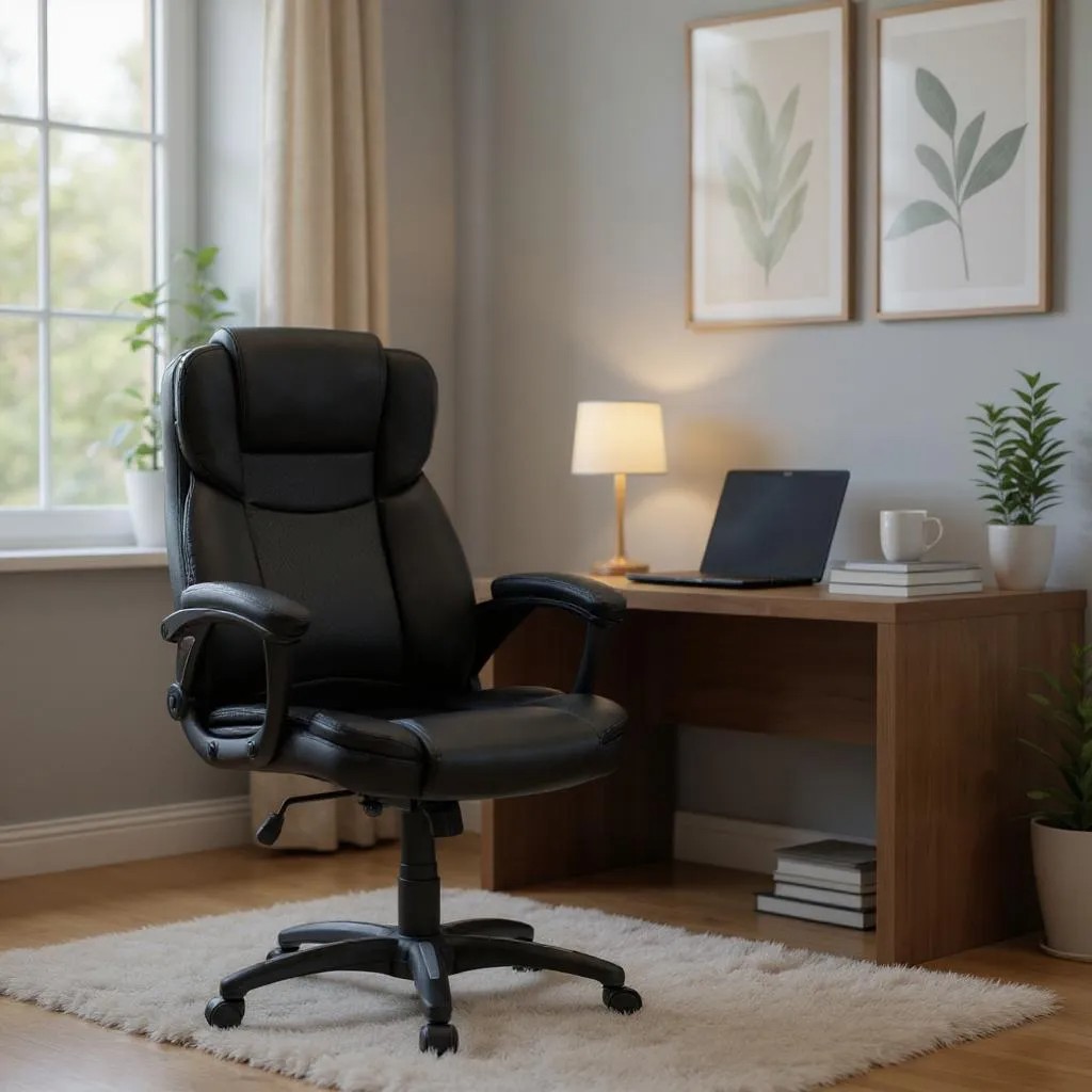EXECUTIVE OFFICE ARMCHAIR IN BLACK PU LEATHER WITH GAS LIFT +TILT BACK FUNCTION | BLACK BASE| DIM. W67 X D65 X H112/122CM