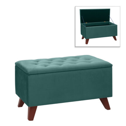 foot stool with storage in dark green velvety fabric / dim.90 x40 xh50cm with dark cherry colorĀ feet