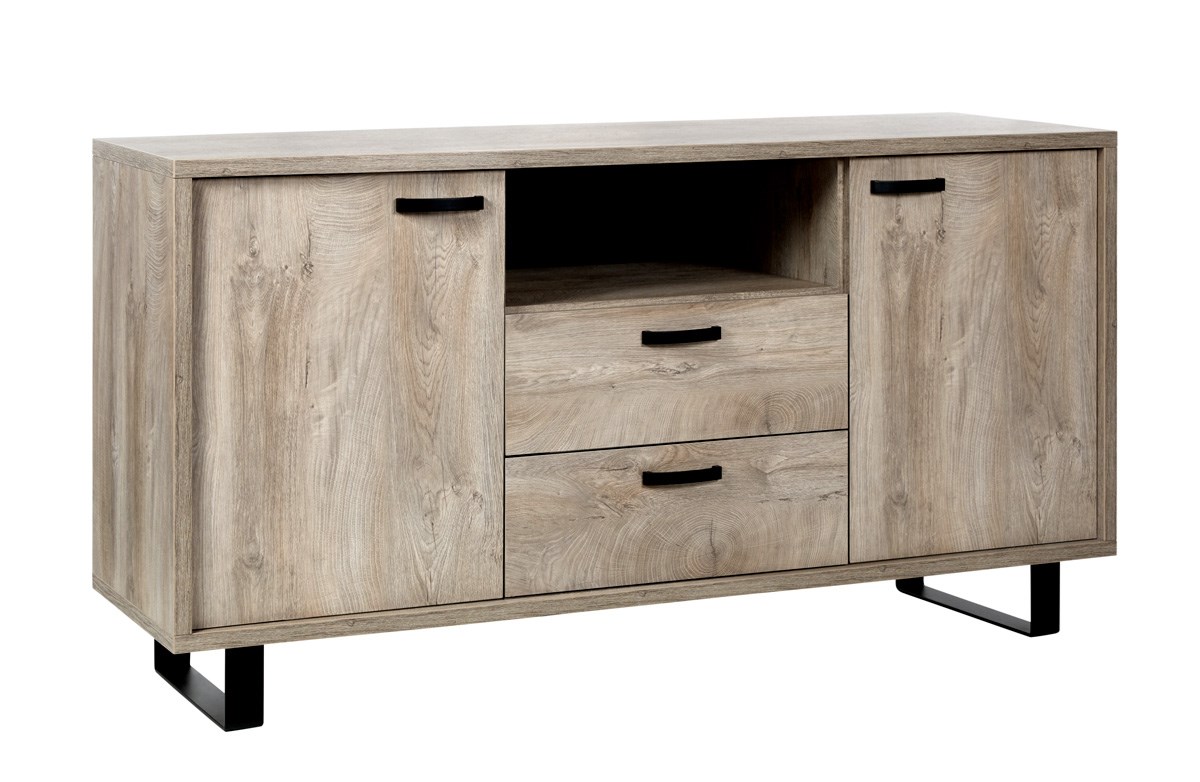 COMO HUMUS OAK DR17 SIDEBOARD A DOOR TO THE LEFT +2DRAWERS+OPEN SHELF IN THE MIDLE+ DOOR TO THE RIGHT WITH BLACK METAL FEET DIM. W170 X D50 X H87CM (KD)