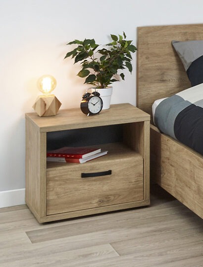 CASPER NT NIGHT TABLE WITH ONE DRAWER + OPEN SHELVE DIM. W52 XD44X H48CM IN COLOR GOLDEN OAK -PACKED IN 1 box