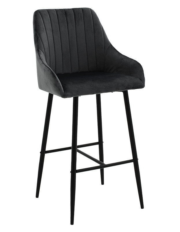 BAR STOOL IN BLACK VELOUR FABRIC AND BLACK METAL FEET/ DIM W 49 X D48 X H98CM (SEATING HEIGHT 66CM)
