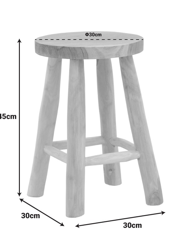 STOOL IN NATURAL COLOR TEAK WOOD DIAM 30 X H45CM