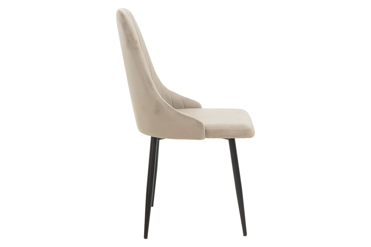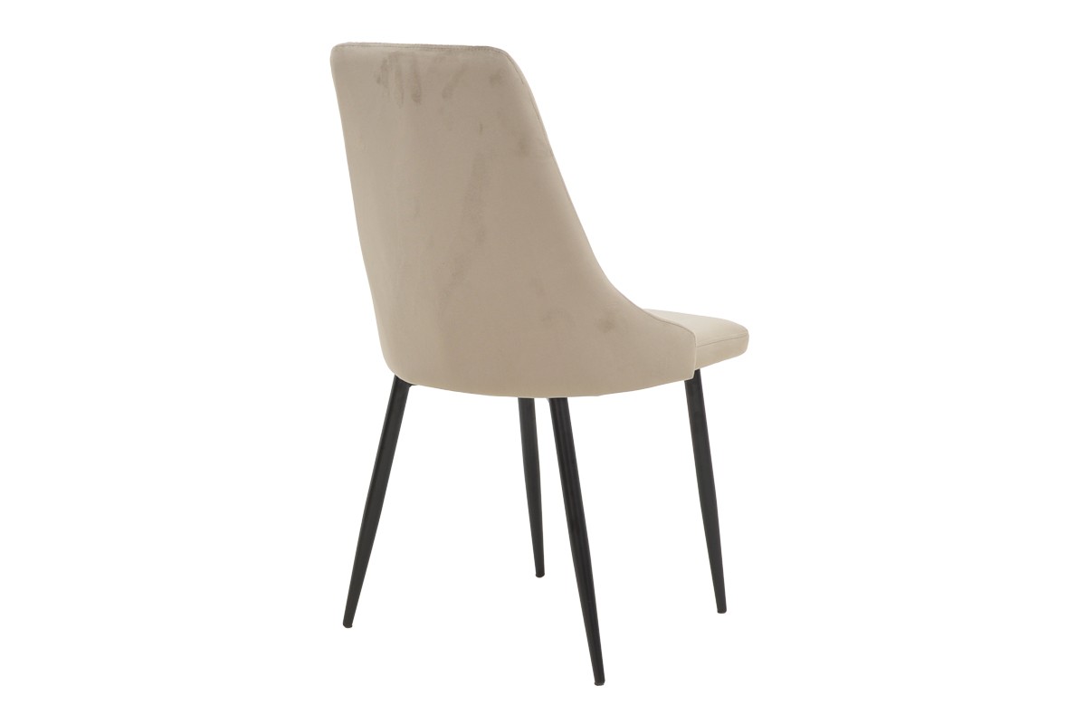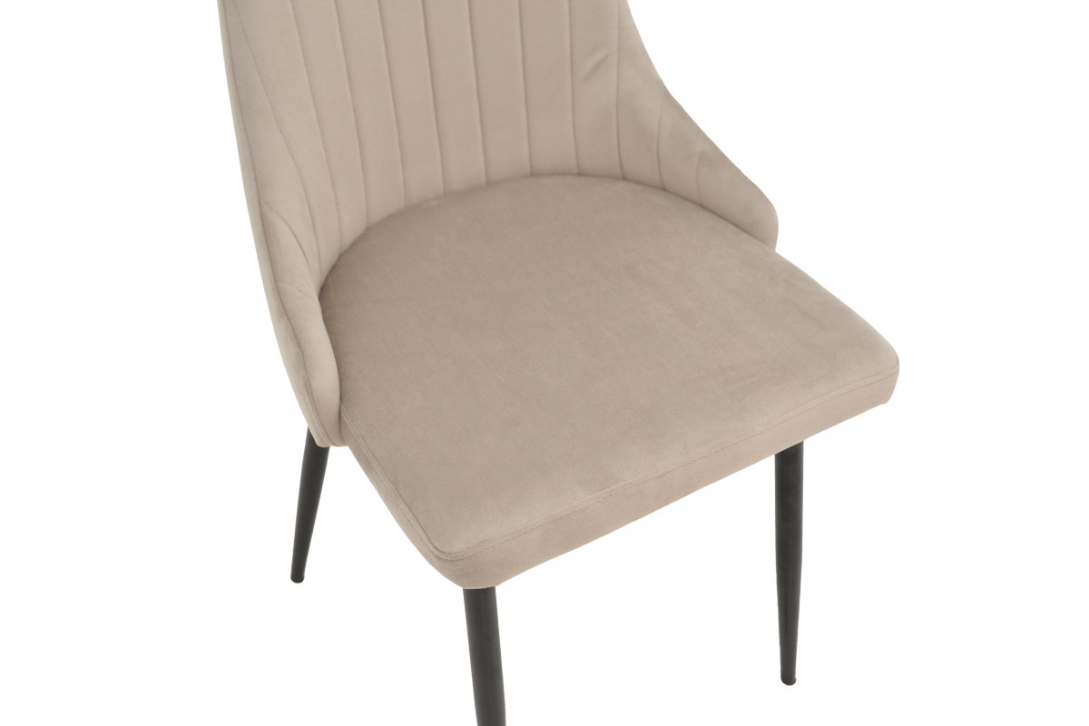 DINING CHAIR UPHOLSTERD IN BEIGE VELOUR FABRIC -BLACK METAL FEET/DIM. W49 X D55 X H85CM