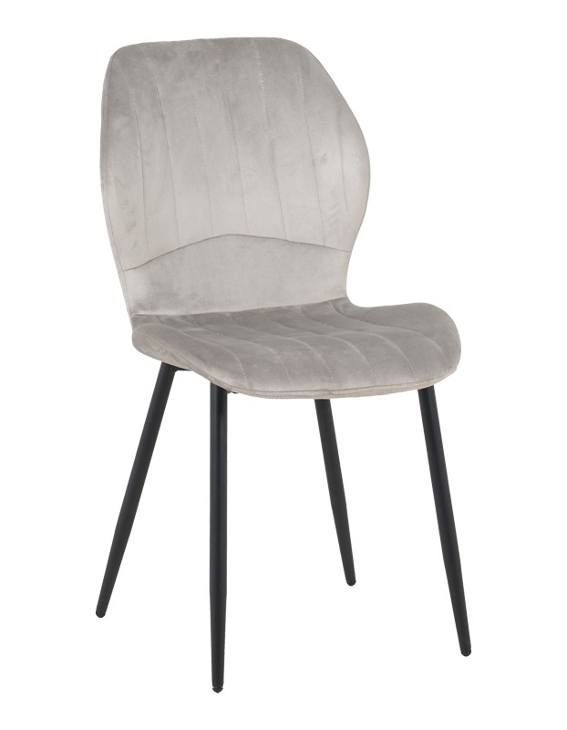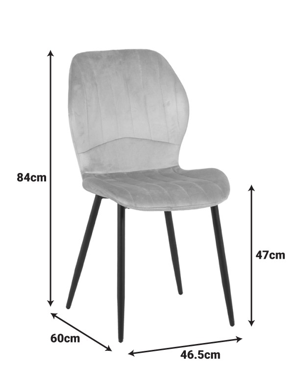 DINNING CHAIR IN GREY FABRIC AND BLACK METAL FEET DIM. W46.5 X D60 X H84CM