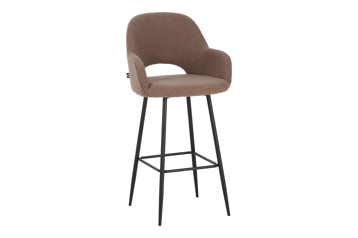 bar stool seat & back in cappuccino bouckle fabric /black metal feet/ dim. w51 x d57 x h114cm (seat height 75cm)