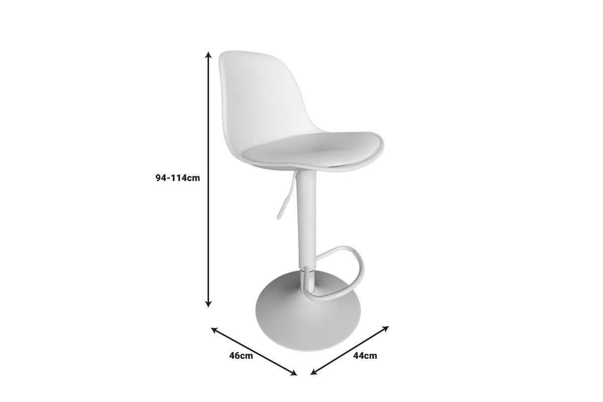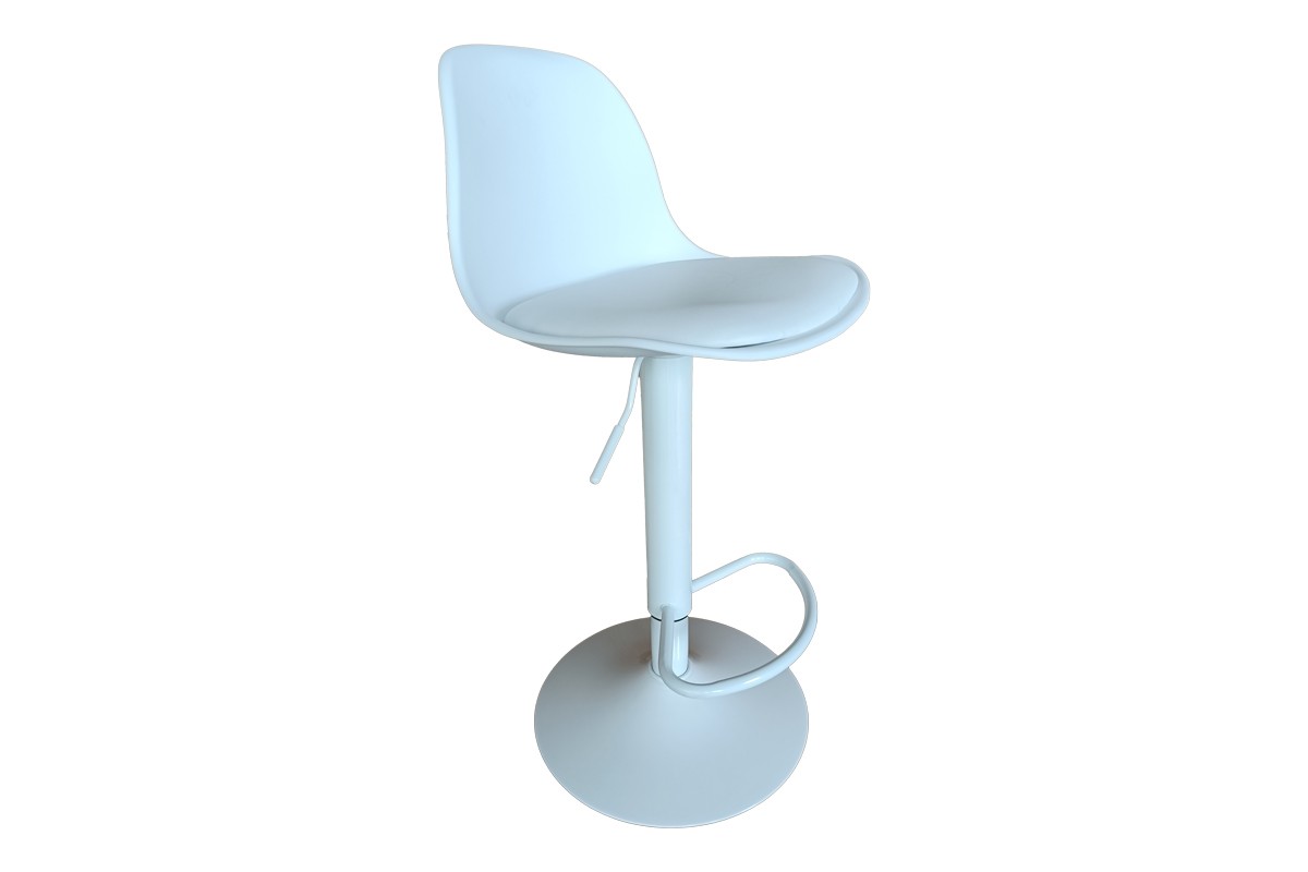 BAR STOOL IN WHITE PP SEAT WITH WHITE PU PILLOW /WHITE COLOR METAL BASE WITH GAS LIFT /DIM W44 X D46X H94/114CM (SEATING HEIGHT 57/74CM) /WEIGHT ENDURANCE UP TO 150KG