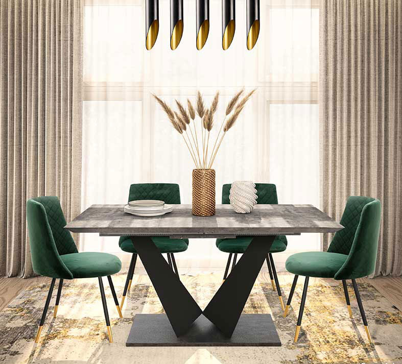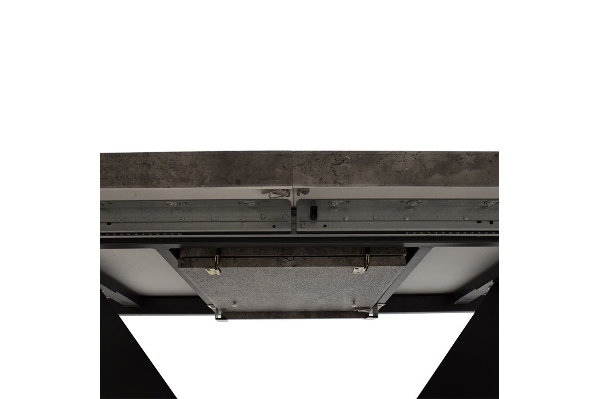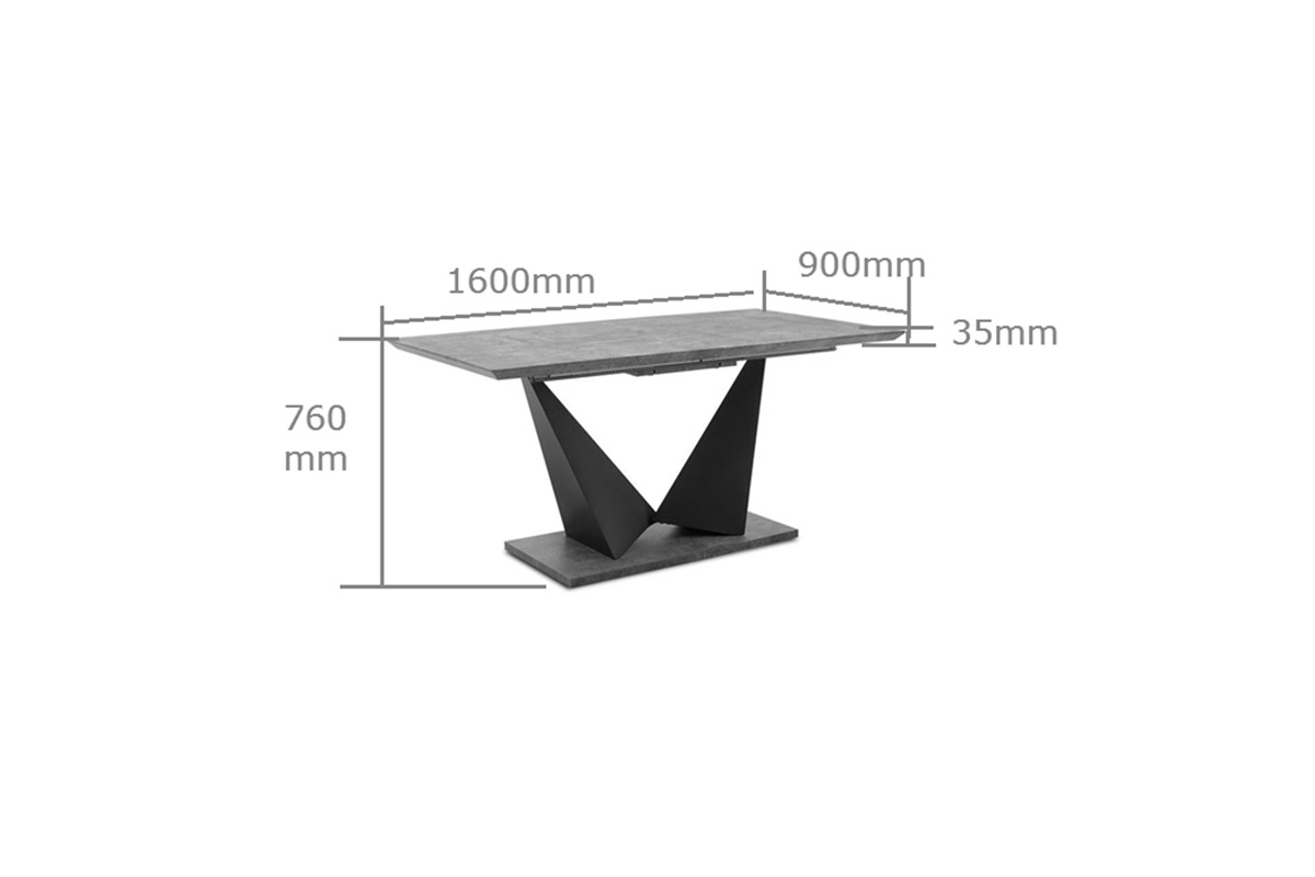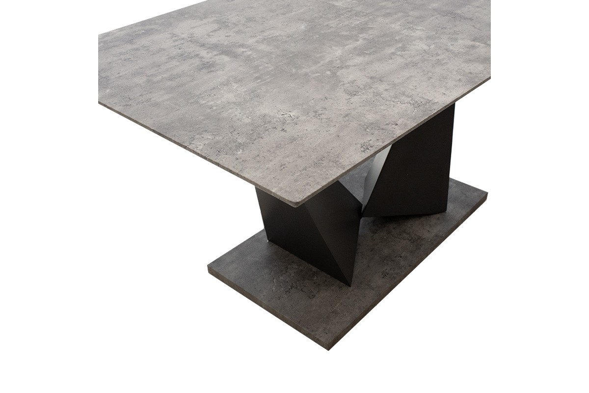 ext. dining table in grey cement look wooden top + metal base black color dim.160 +40 x 90 x h75cm