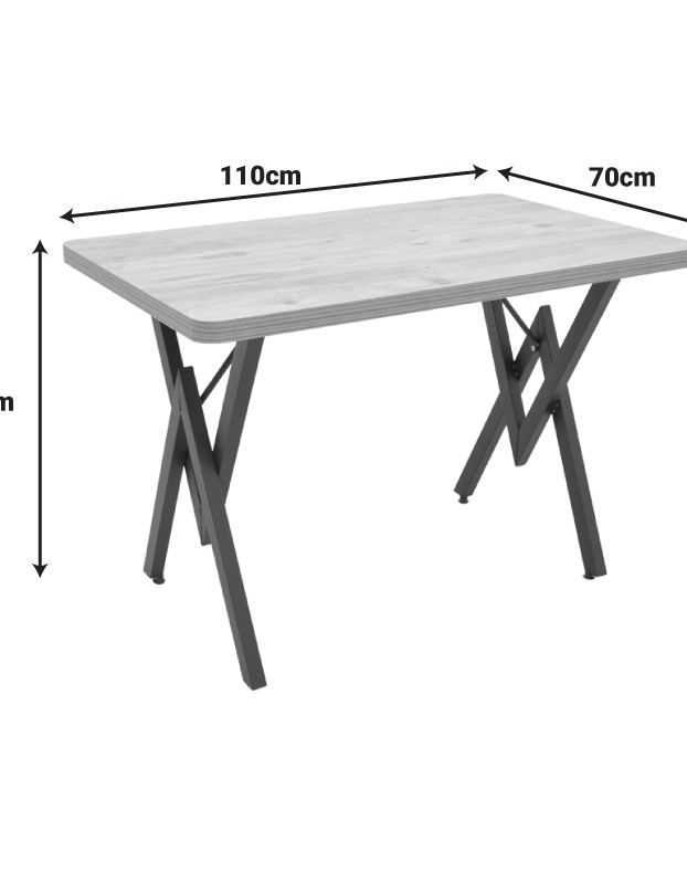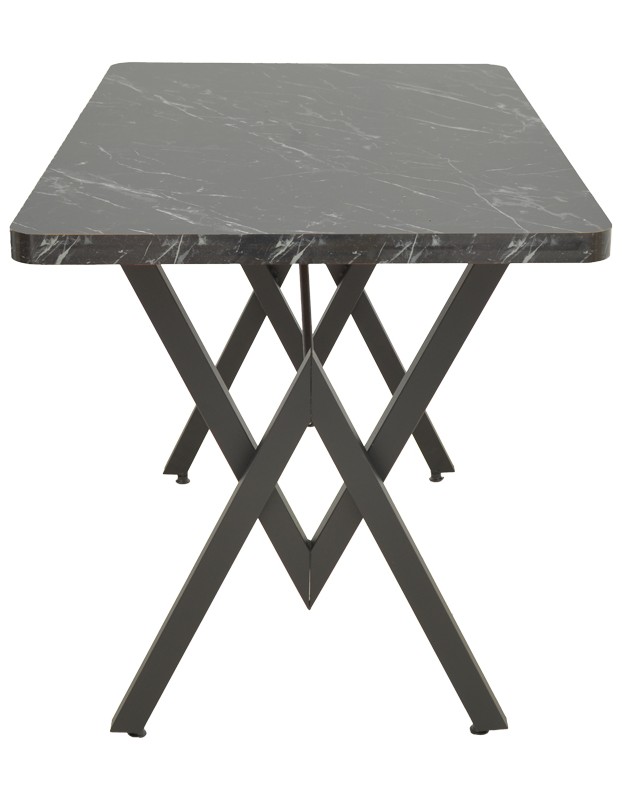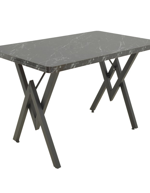 DINING TABLE IN BLACK MARBLE LOOK LAMINATE TOP AND BLACK METAL FEET / DIM 110 X 70 XH72CM