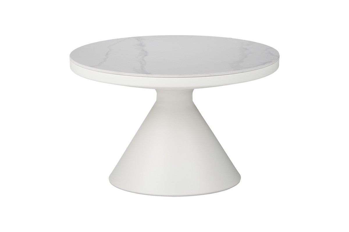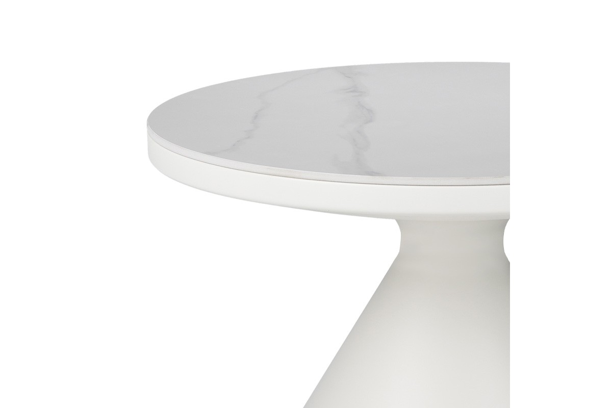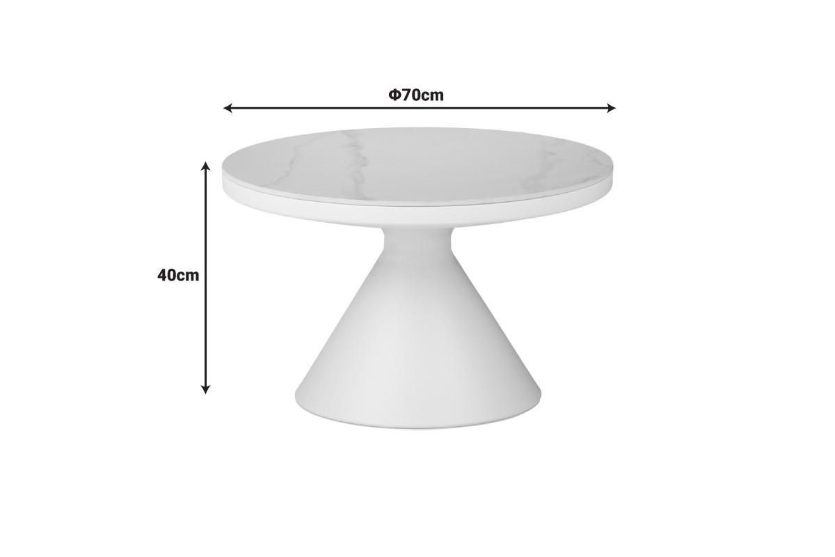 coffee table white metal base and white sintered stone marble look top /diam 70 x h40cm