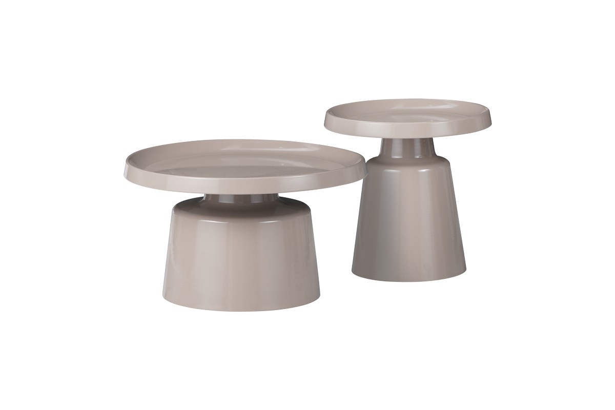 set of 2 coffee tables in cappuccino color metal / diam 50xh50cm / 70 xh70cm