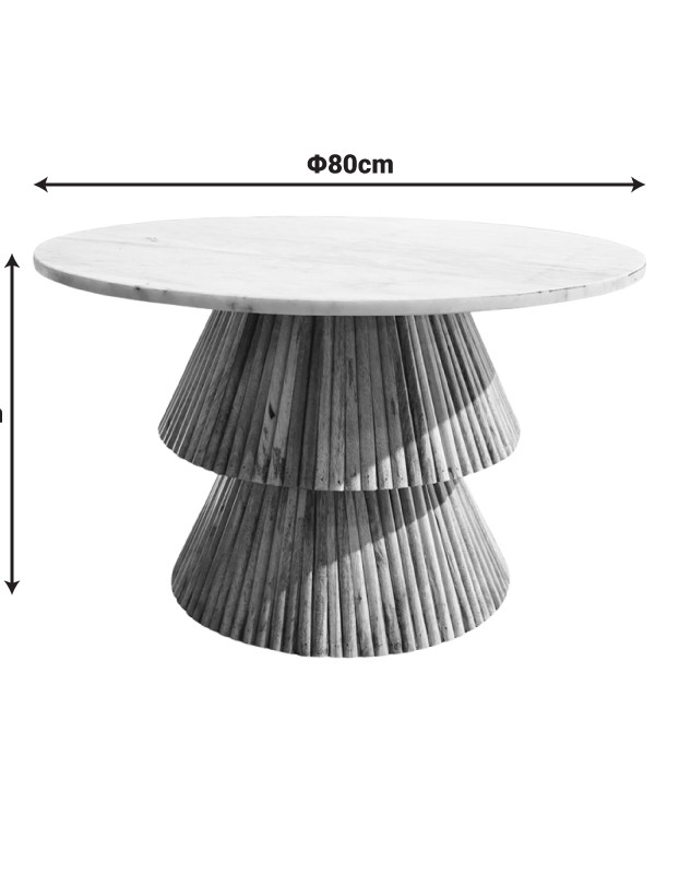 COFFEE TABLE IN SOLID MANGO WOOD NATURAL SHADE AND WHITE MARBLE TOP/ DIAM W80 X H45CM