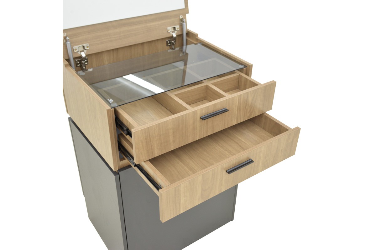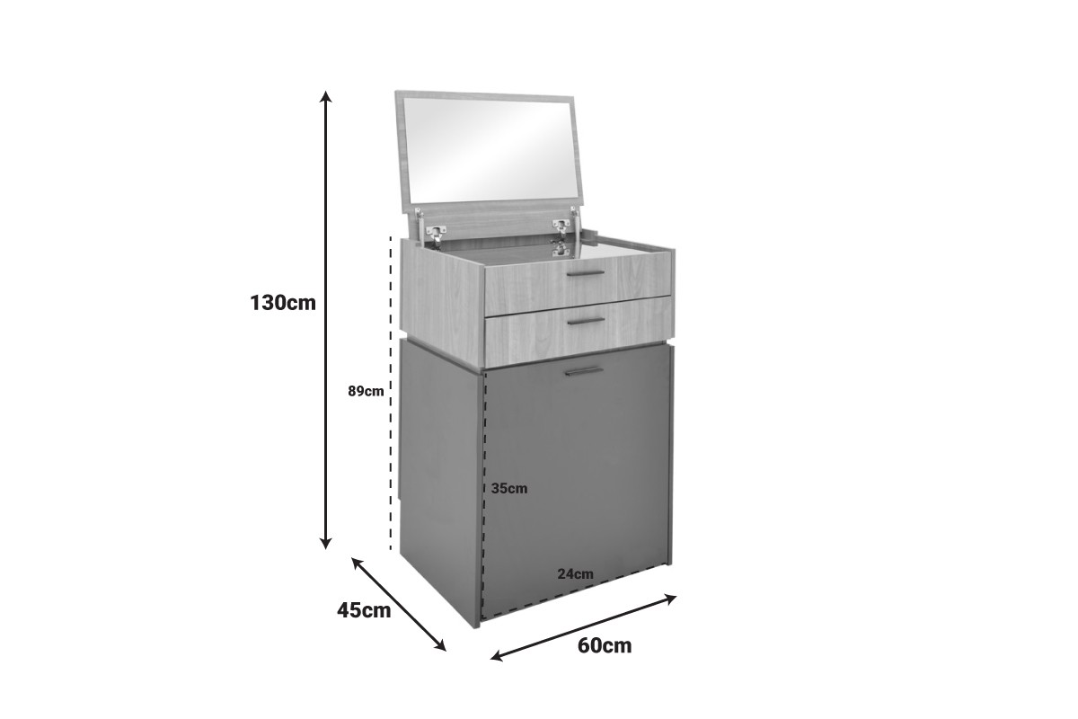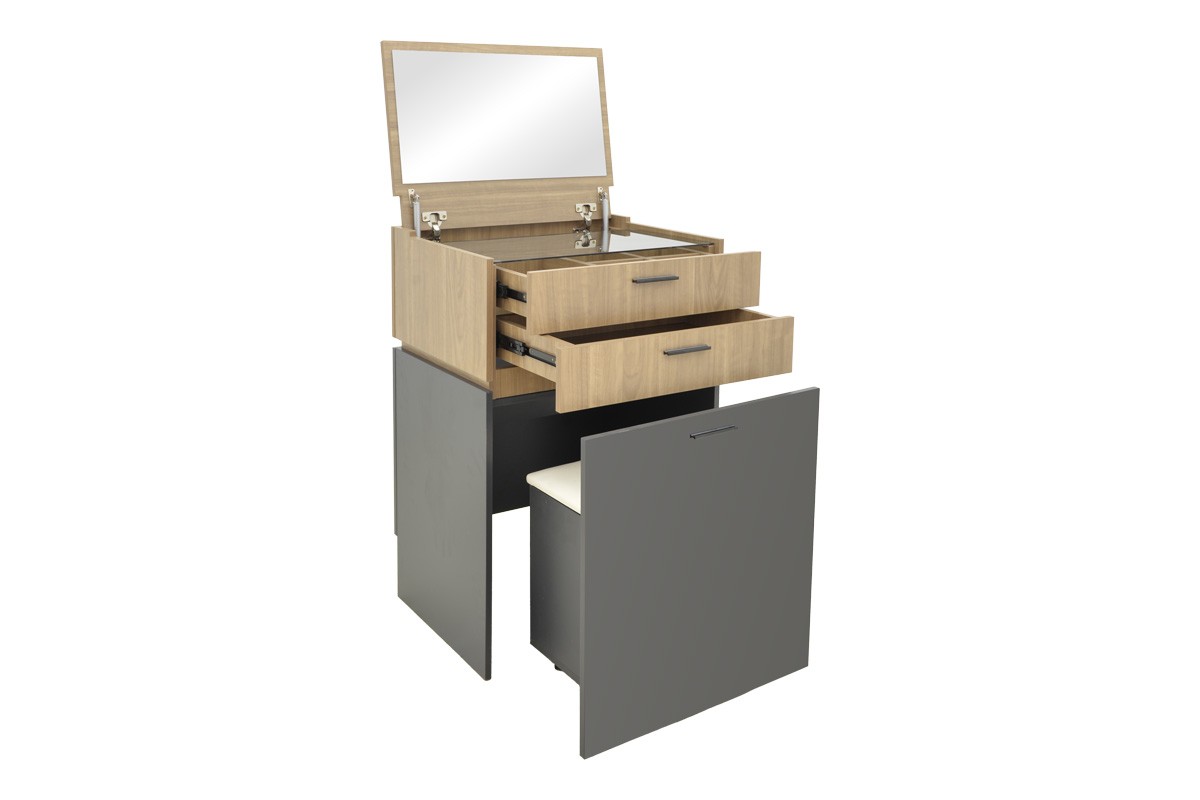 dresser with fold-in mirror+incorporated pouf (w60 x d45 x h130cm) in sonoma and anthracite colors