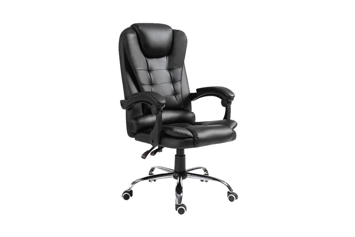 executive office armchair  in black pu  / chromed metal base /tilt back function /dim  w62 xd48 x h110/120cm-kd