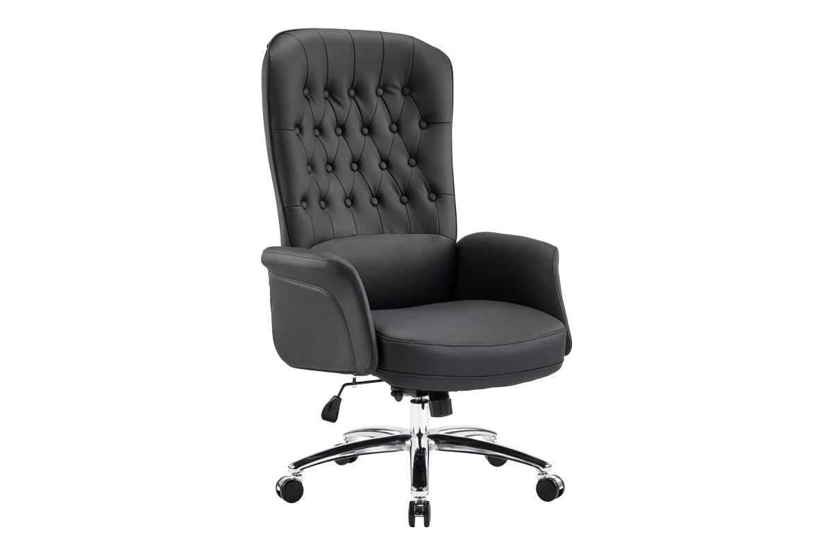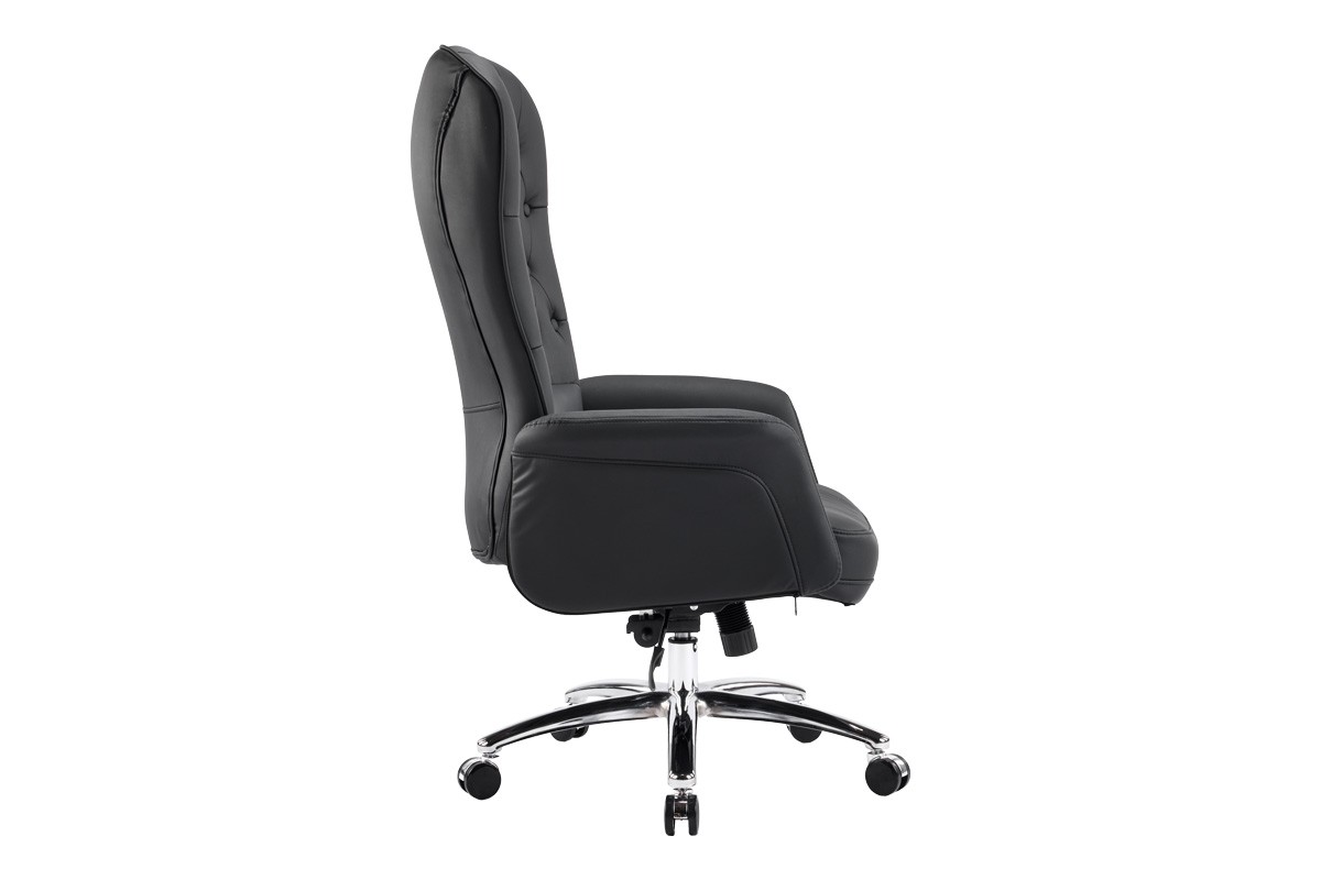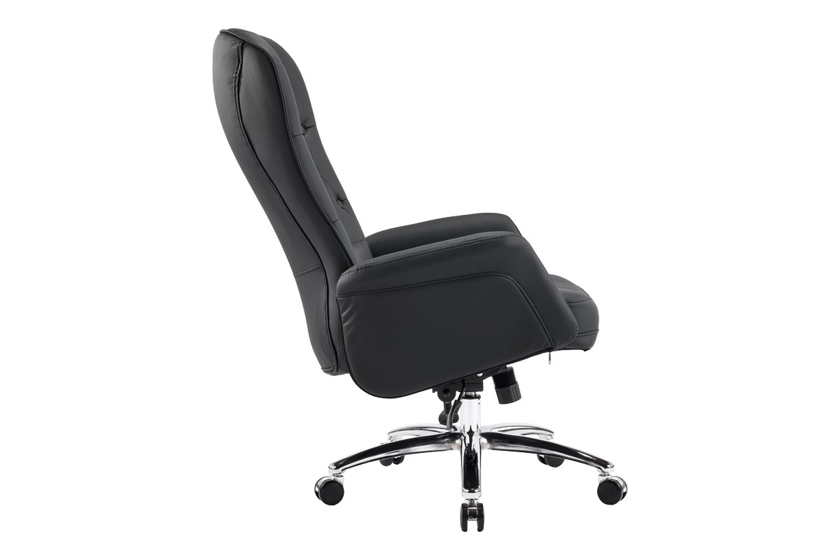 EXECUTIVE OFFICE ARMCHAIR IN BLACK PU / CHROMED METAL BASE /TILT BACK FUNCTION /DIM W69 XD79 X H115/123CM (SEATING HEIGHT 48/56CM)-KD