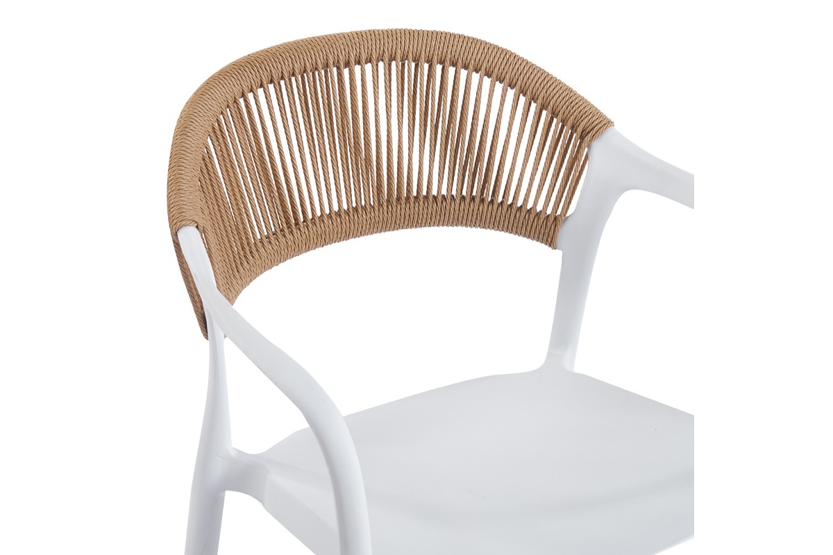 GARDEN ARMCHAIR STACKABLE IN POLYPROPILINE (PP) COLOR WHITE  AND PE RATTAN NATURAL COLOR DETAILS DIM. W54 X D55.5 X H77CM