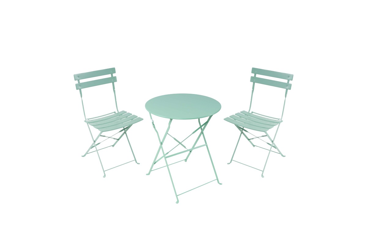 BISTRO (col.MINT) GARDEN FOLDING SET OF A ROUND TABLE DIAM 60 X H71CM + 2 CHAIRS DIM W42 X D46 X H82CM/ METAL FRAME COLOR MINT-WEIGHT ENDURANCE 60KG