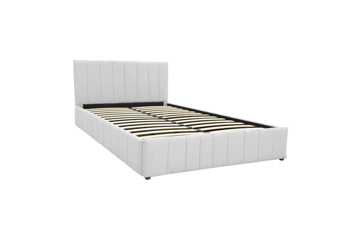 DOUBLE BED WITH STORAGE (160X200CM) UPHOLSTERED IN FABRIC COL.LIGHT GREY /H/BOARD HEIGHT100CM- TELAROS INCLUDED-KD-
