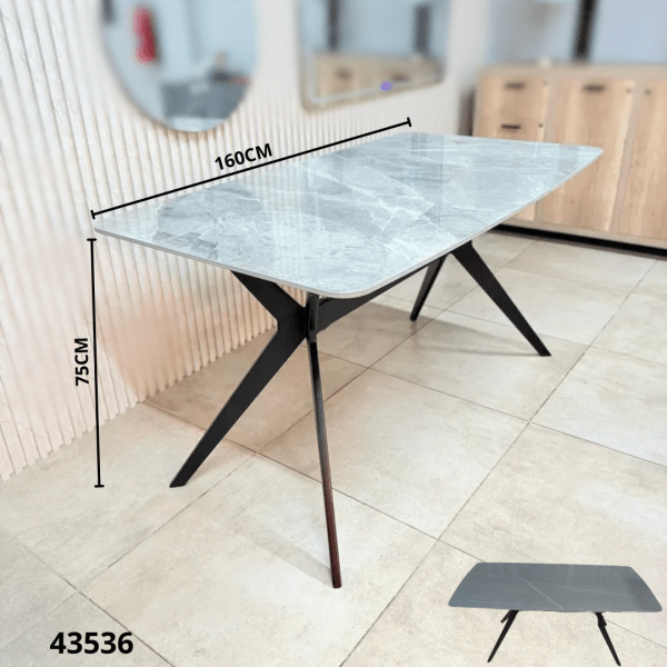 DINING TABLE WITH SINTERED STONE TOP( COL. GREY MARBLE LOOK) AND BLACK METAL BASE -DIM 160 X 90 X H75CM